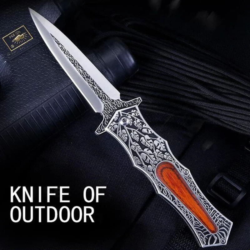 9.2'' Pocket Hunting Knife Tactical Folding Hunting Knife Steel Handle EDC Pocket Outdoor Tools Cam